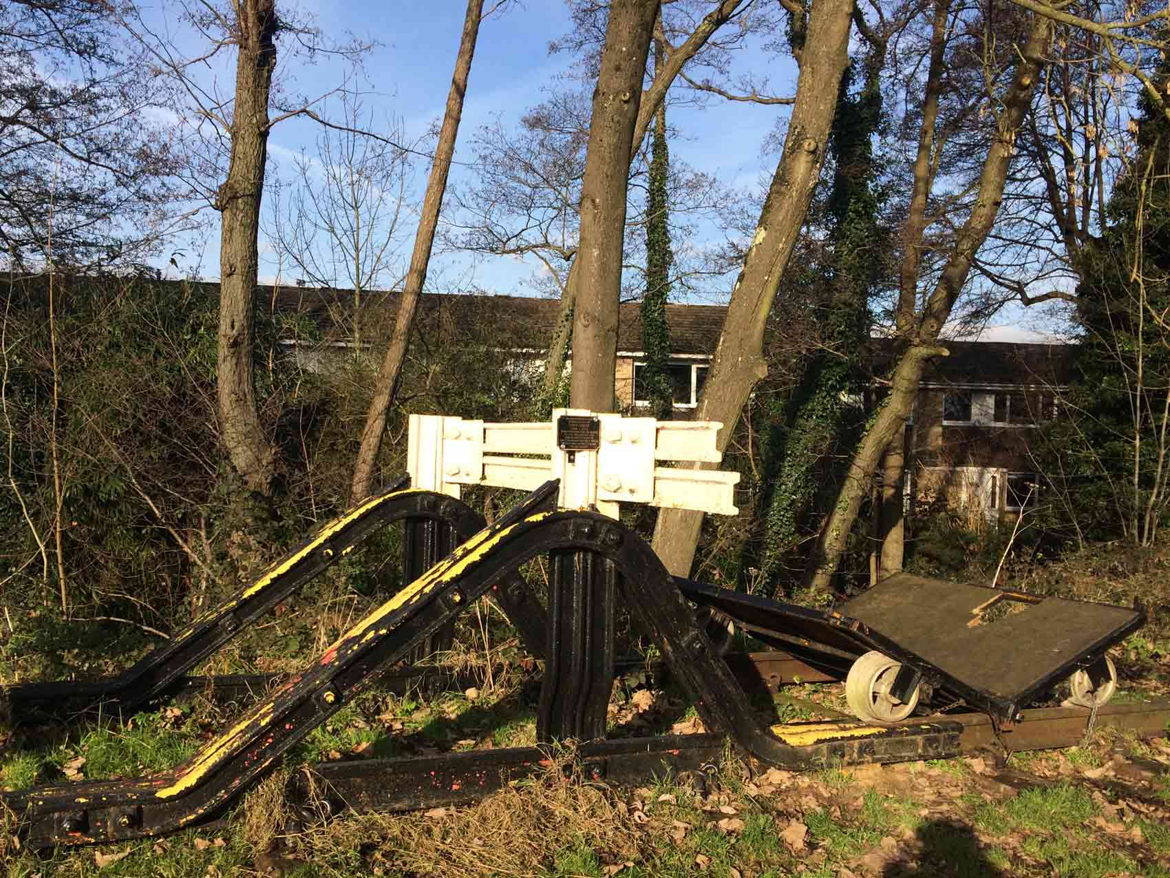 Once on the line, our journey took us past an old buffer and some sort of railway cart still sitting on its rails,