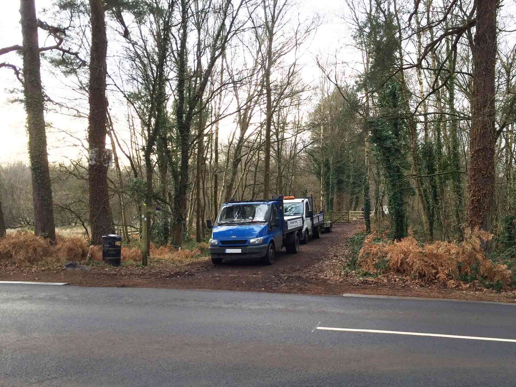 Find the car park on Forest Road (approximately GU33 7BX) between the bridge over the A3 and the road called Briar Wood. From this car park, cross Forest Road and the Riverside Railway Walk starts through the gate.