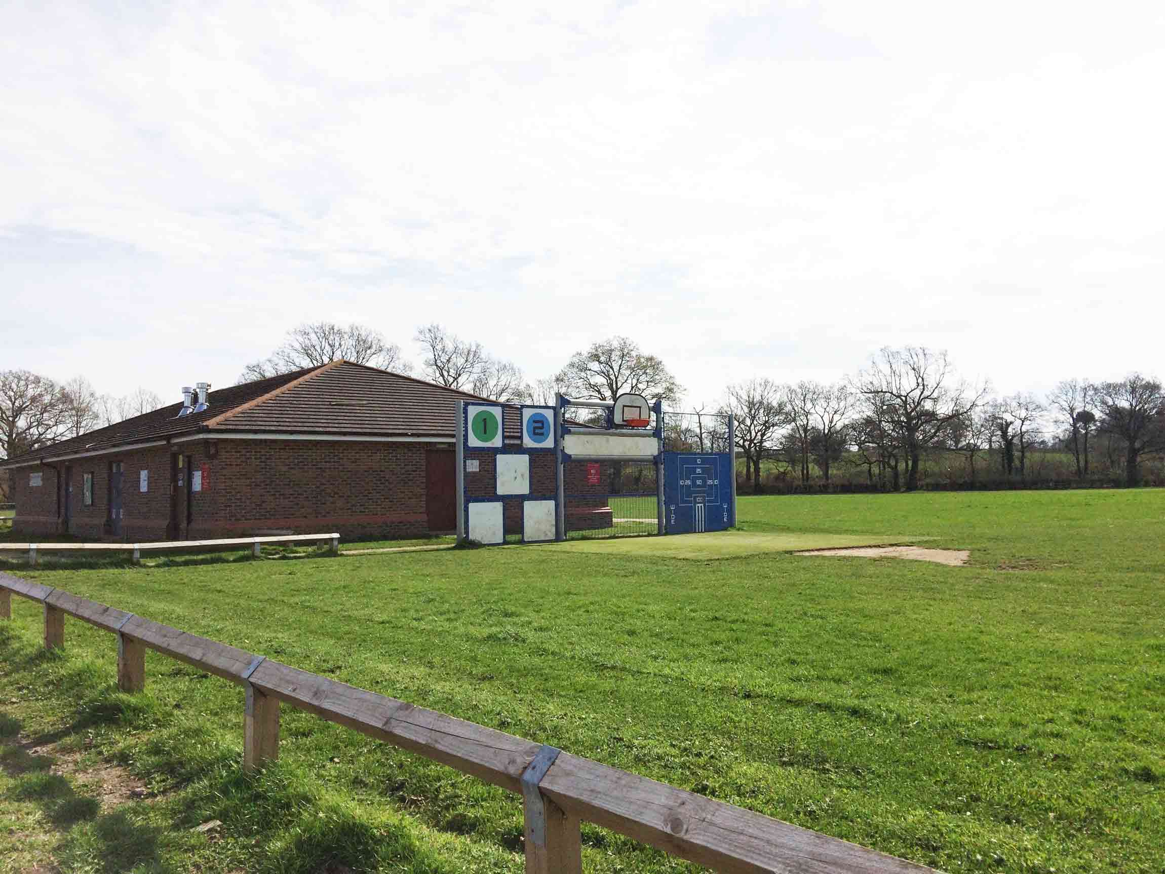 Mill Chase Play Area is a small, enclosed play area next to a large field.