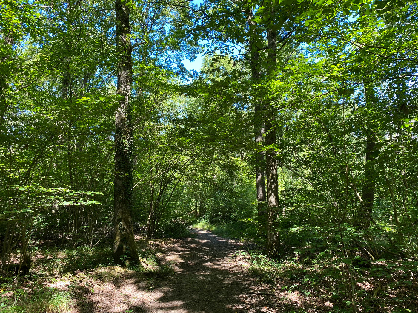 Follow this until it bends hard to the left. Then choose a path that goes into the woods on your right and you will find the canal.