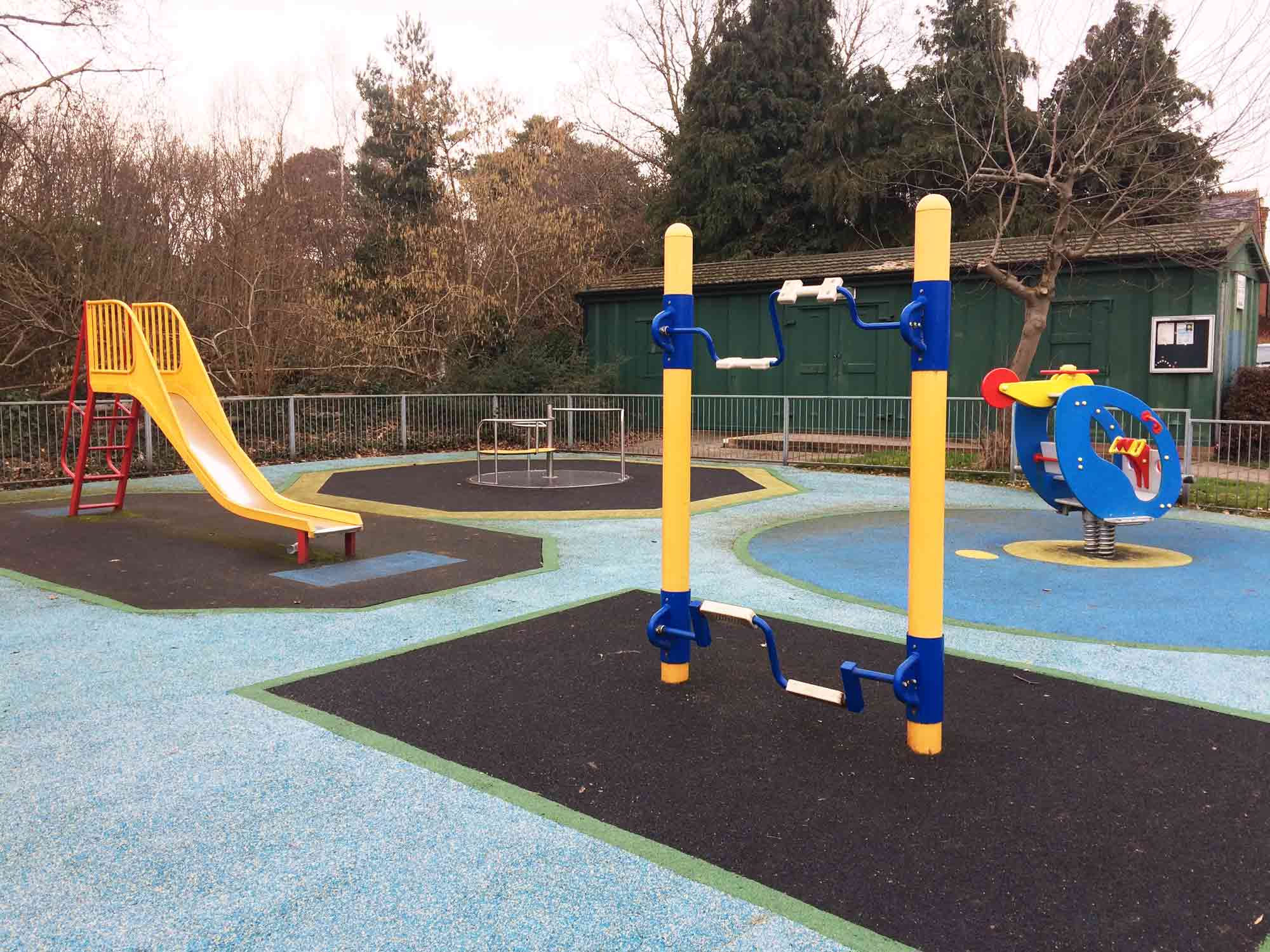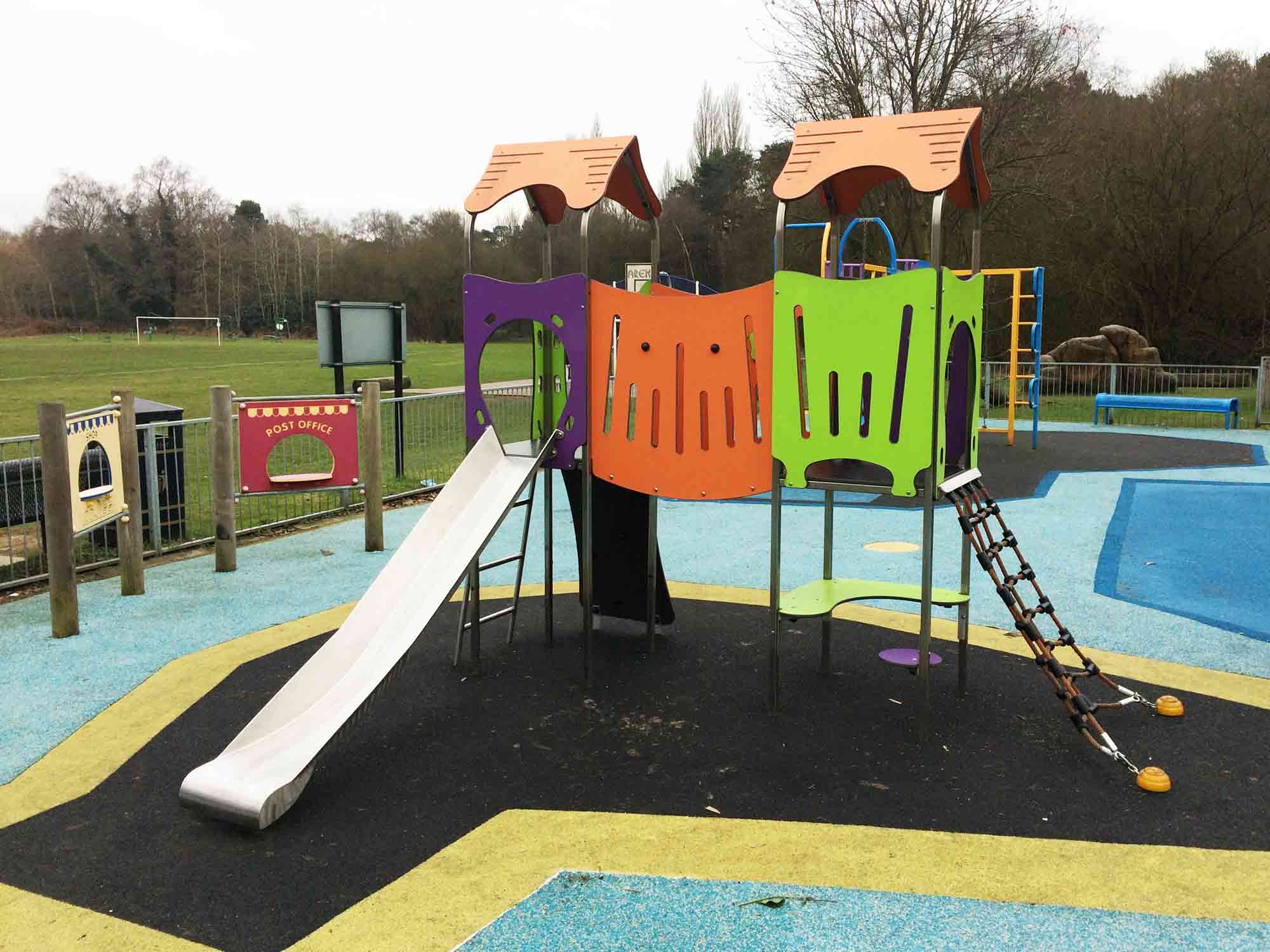 This playground is said to be suitable for children to the age of 13 years old and has equipment including: