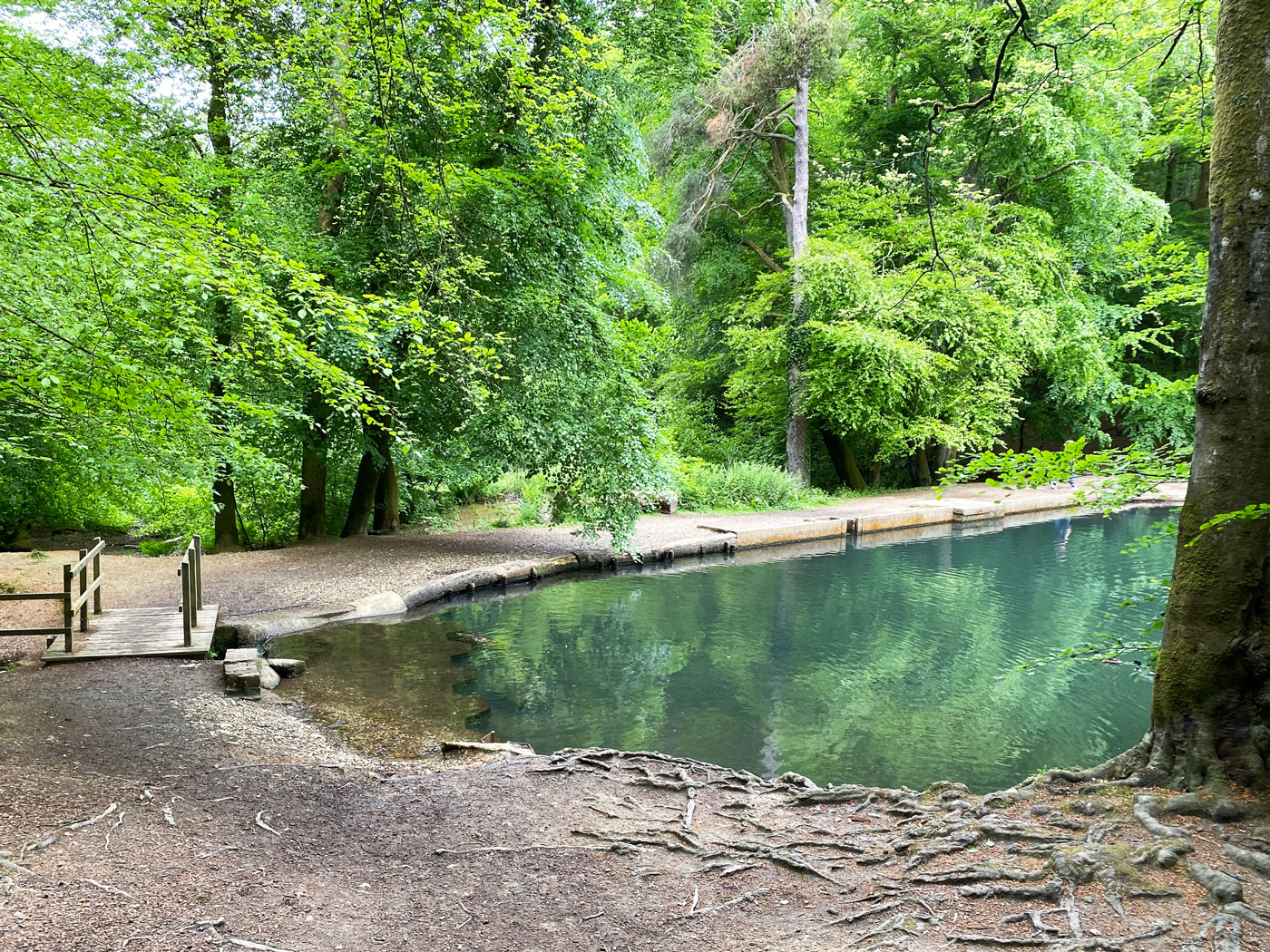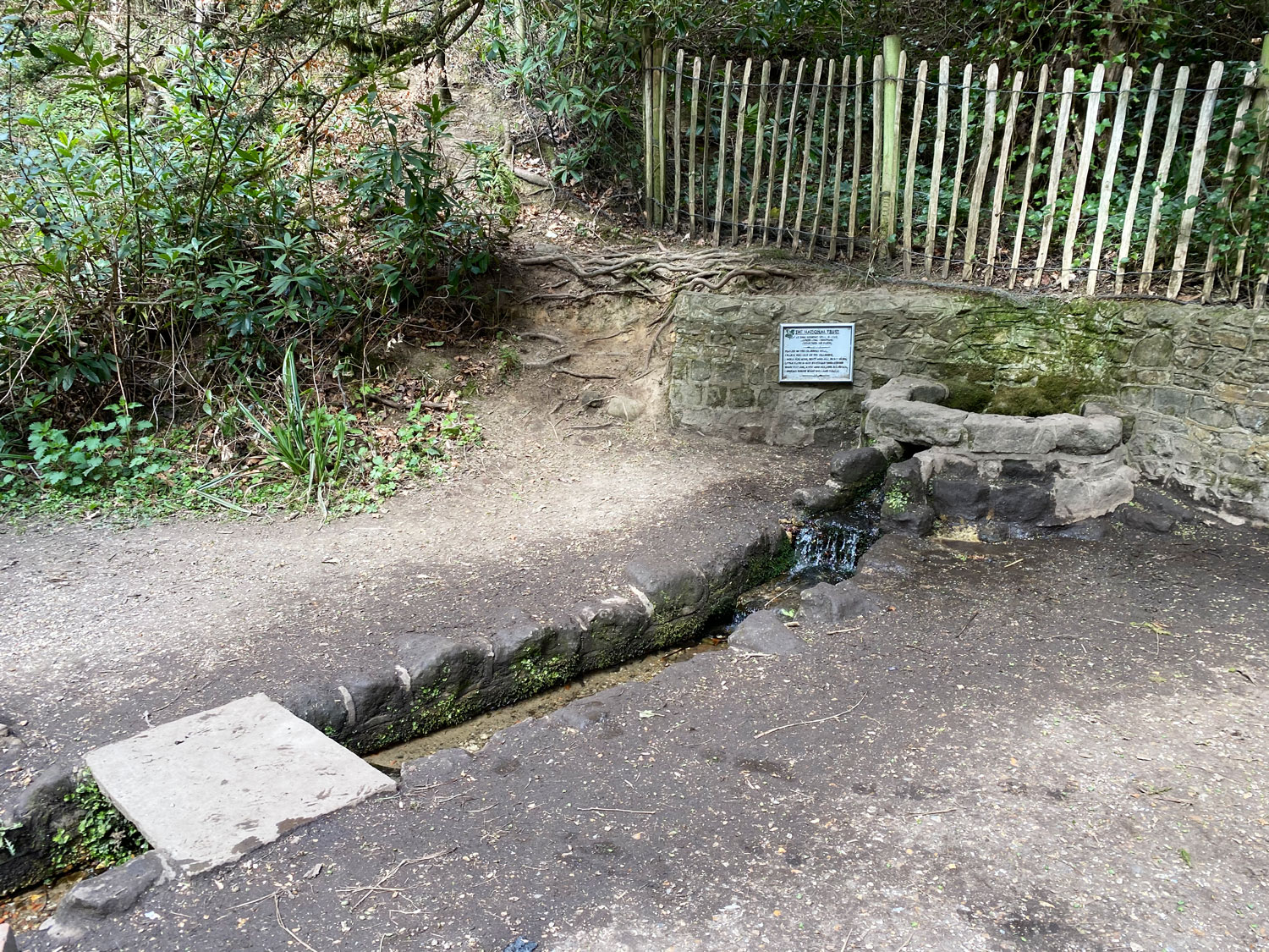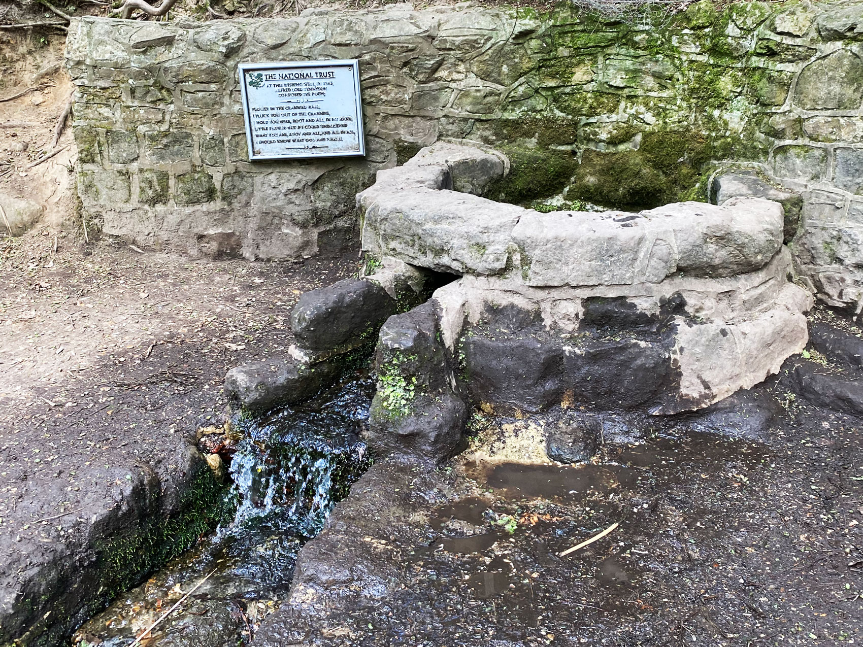 The wishing well is at the lowest end of Waggoners Wells, a little beyond the last pool. A plaque on the wall commemorates the poem “Flower in a Crannied Wall” by Tennyson, which is believed to have been written here in 1863.