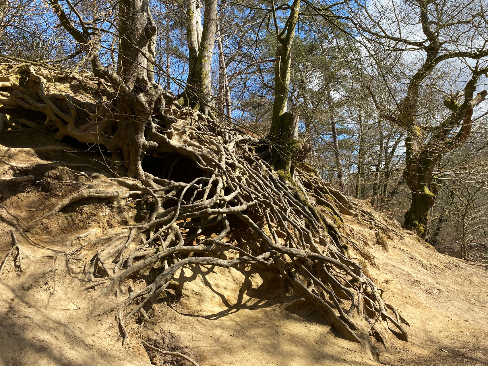 tangles of tree roots to explore